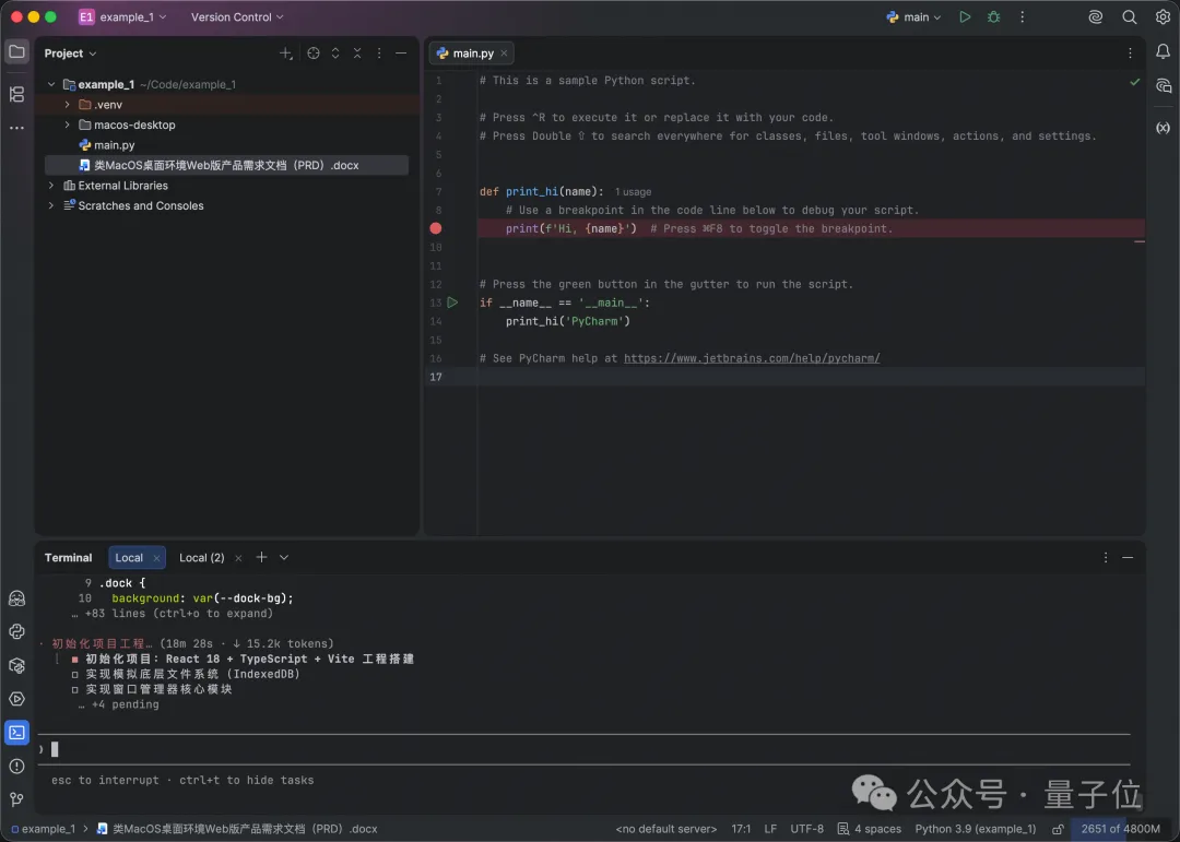 瞧,待它分析完任务之后,自己就开始唰唰地编程了:
