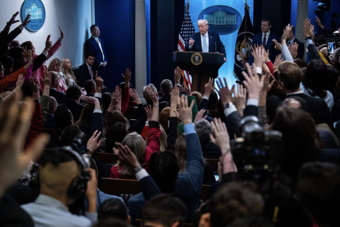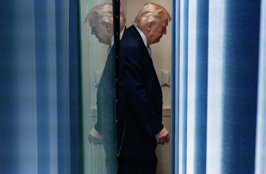 ▲周一,特朗普在白宫新闻发布会上发表讲话。(图源:纽约时报)