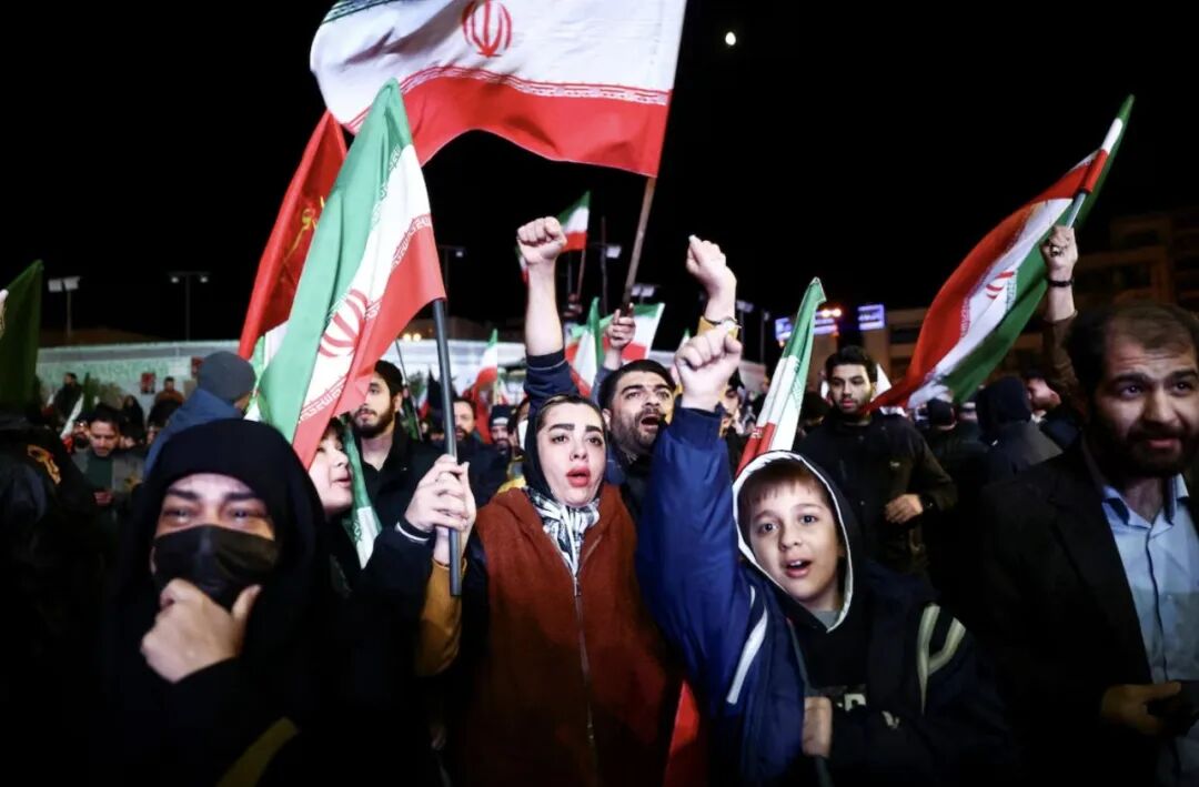 ▲4 月 8 日,在伊朗德黑兰,为期两周的伊朗战争停火协议宣布后,人们聚集在一起挥舞旗帜。(图源:路透社)
