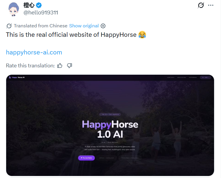 目前技术圈认可度较高的结论是:HappyHorse是daVinci-MagiHuman联合开发方之一的Sand.ai,基于开源模型优化的迭代版本,核心目的是验证模型在用户真实偏好下的表现上限,为后续商业化落地做铺垫。