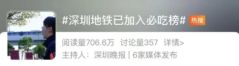 近日,深晚话题“深圳地铁已加入必吃榜”