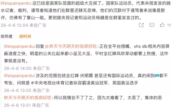 网友也怒批,“这已经是国家队层面的超级大丑闻了。国家队运动员,代表央视发言的跳水记者,裁判,谩骂者知道他们在群里还肆无忌惮,他们的沉默对于谩骂者来说像是默许,仿佛有了靠山一般。更别提央视记者和运动员杨健是在群里发言过的。”