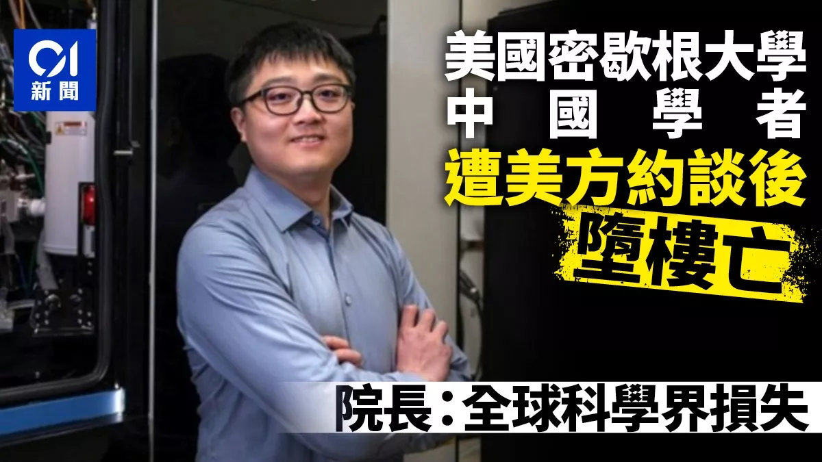 据此前报道,美国密歇根大学(University of Michigan)一名中国研究员日前在校内堕楼死亡,中国要求美方调查事件,并指死者生前曾遭美国联邦执法人员“无端讯问”。