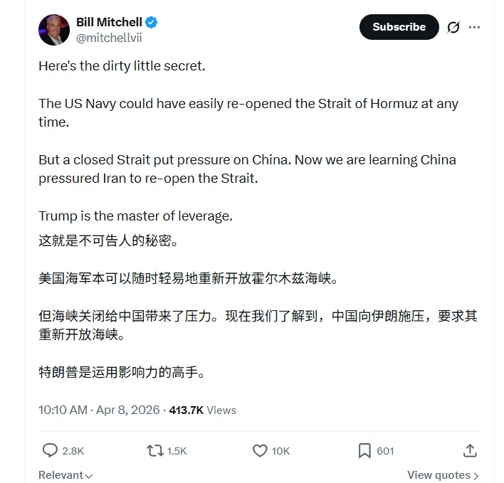 至于后续如何,取决于特朗普能不能拿到钱,如果拿到钱,无论两周发生什么,特朗普也会借口开战,如果拿不到钱,所谓的两周停火就变成了无限期的停火,无论特朗普如何吹牛X,没钱是物理意义上的约束。