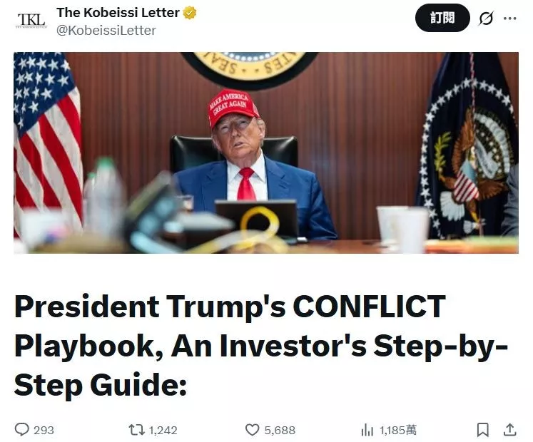 独立宏观机构The Kobeissi Letter认为美伊停火只是川普的“冲突剧本”在按表操课。(截取自X@KobeissiLetter)