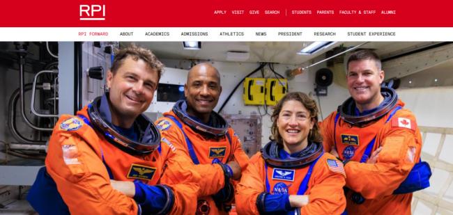 RPI的官网主页是绕月四人组的合影。