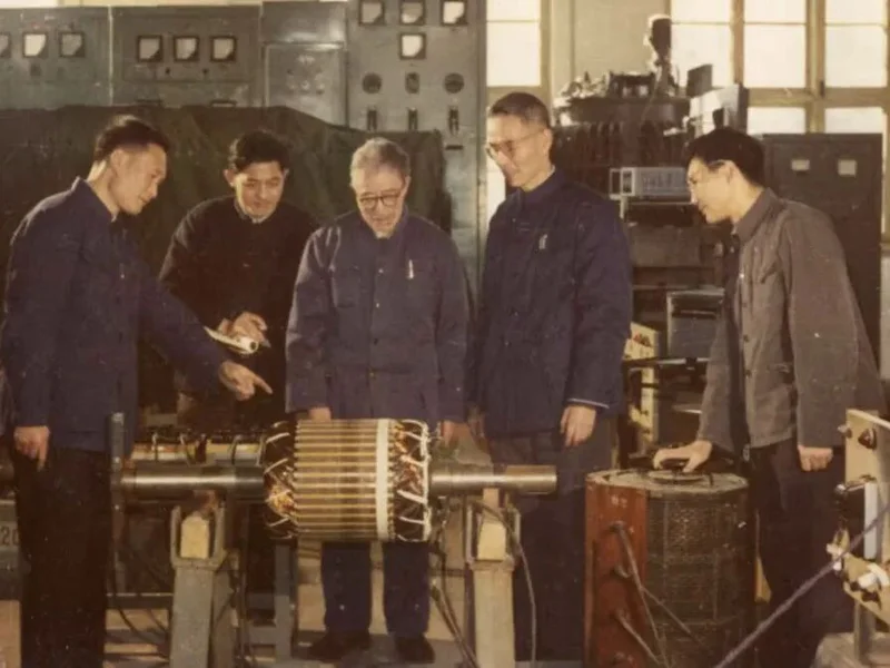 钟兆琳教授(正中)晚年在电机实验室(图:XJTU)▼