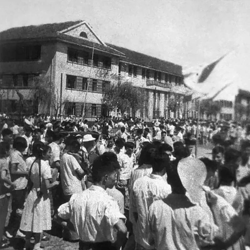 仅用了两个月,一座能容纳6千人的高等学府就在麦田里“冒”了出来。没有大礼堂,就用竹子搭个草棚。一下雨,常能看见老师满身泥巴出现在教室门口。