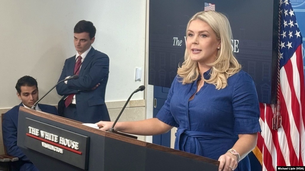 白宫新闻秘书莱维特在白宫举行记者会。(2026年4月8日)