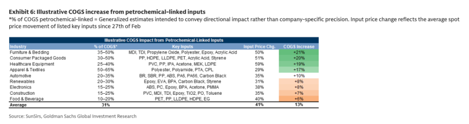 数周以来,业内人士一直在剖析海湾能源冲击将如何引发连锁反应:冲击波从中东向外扩散,首先波及亚洲,能源产品供应趋紧,这可能导致全球经济动荡。如今,这种能源供应趋紧的连锁反应,已在亚洲各地的工厂车间中显露无遗,令人担忧。高盛分析师Georgina Fraser率领的团队周一警告客户,亚洲地区的石化冲击正在加剧,纺织和包装工厂已成为首批遭受重创的下游企业。Fraser在报告中强调,“供应冲击的传播速度和影响程度都超出了我们的预期。”