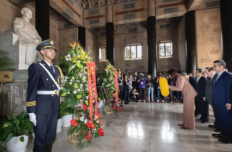 2018年5月27日时任中国国民党主席吴伯雄率大陆访问团到中山陵谒陵 [AFP via Getty Images]
