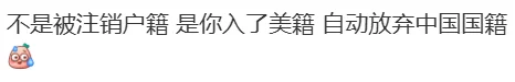 也有人直接指出,这并不是被注销户籍,而是入籍的那一刻,就已经自动放弃了中国国籍。
