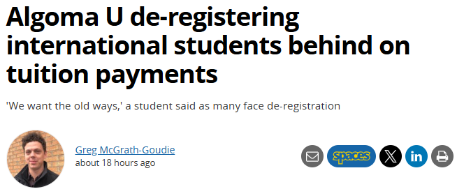 随着学期进入尾声,安省阿尔格玛大学(Algoma University,简称Algoma U)的一群留学生可能无法完成他们的学业。