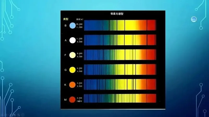 通过分析光谱中的这些特征谱线,天文学家们能够准确判断出该天体的化学成分:比如,当光谱中出现特定波长的谱线时,就说明该天体中含有氢元素;出现另一种特定谱线时,则说明含有氦元素,以此类推。