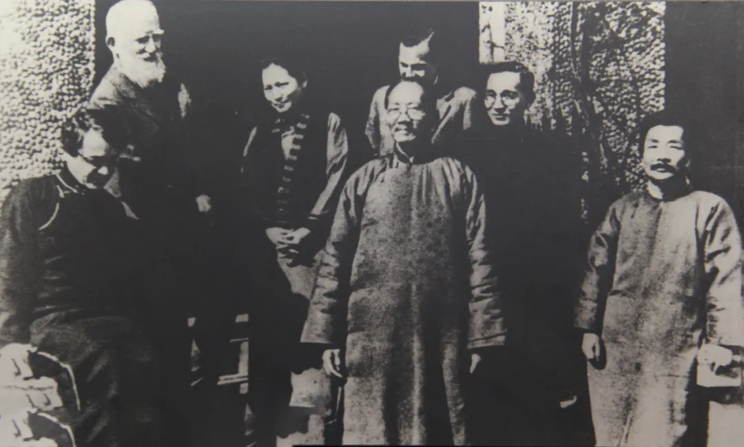 1933 年 2 月,史沫特莱(左一)和鲁迅(右一)、宋庆龄(左三)等与来访的爱尔兰剧作家萧伯纳(左二)在上海合影。FOTOE / 供图