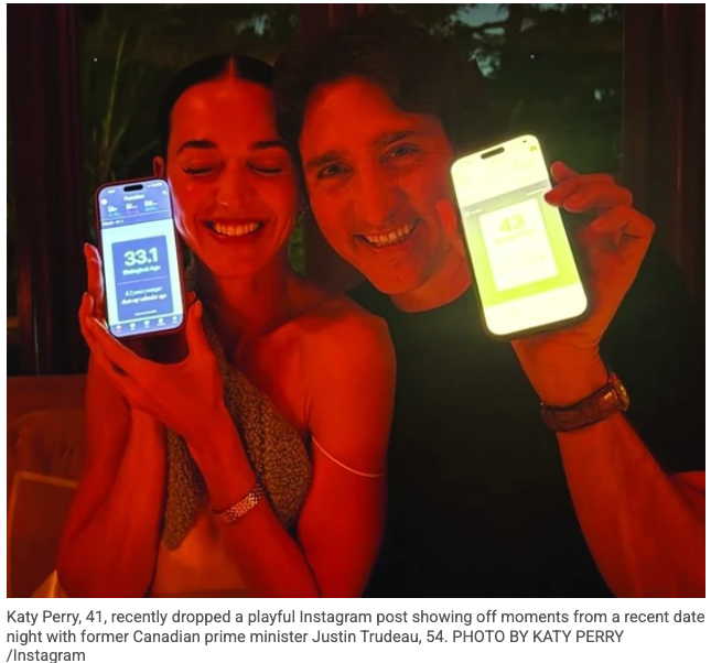 在上个月发布的另一张坦诚的合照中,佩里和特鲁多在将他们的身体数据输入Function Health应用程序后,还拿彼此的“年龄差距”开了个玩笑。Function Health是一款旨在测量人体生物衰老程度与实际年龄对比的应用程序。