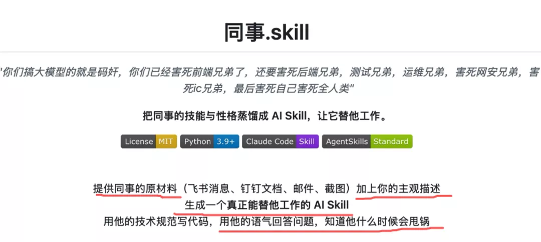 这事源头是 GitHub 上爆火的开源项目同事.skill。