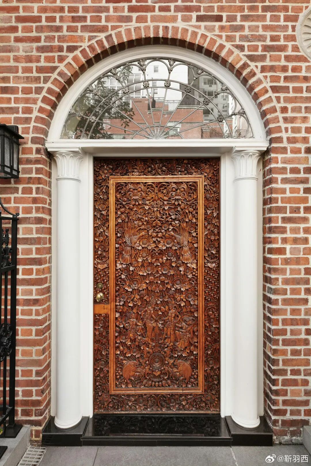 别墅的大门由花纹繁复的雕花柚木打造,就差没把钱镶在门上了。