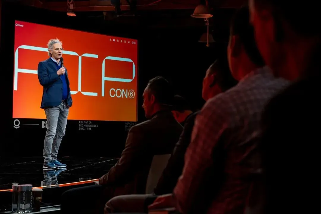 上图:手机应用商店里的Claude AI App界面下图:3月13日,Palantir公司的CEO亚历克斯・卡普在AIPCon大会(展示该企业成果的人工智能大会)上发言。