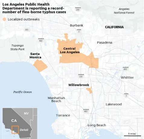 LA County 卫生局发布了紧急提醒:2025年洛杉矶县的跳蚤传播斑疹伤寒(Flea-borne Typhus)病例数创下了历史新高。