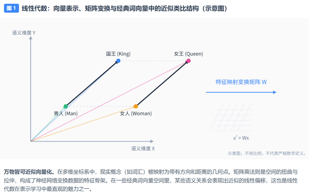 线性代数是 AI 处理数据的基本容器。无论是模型训练时的高维运算,还是推理时对用户输入的解析,现实世界的复杂信息都必须借由它才能被计算机消化。