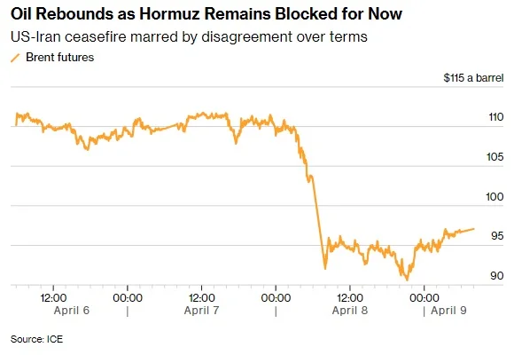 周四(4月9日)亚市早盘,油价在创下自2020年4月以来最大单日跌幅后反弹,因为霍尔木兹海峡仍大体受阻,同时以色列对黎巴嫩的攻击威胁到中东脆弱的停火局面。