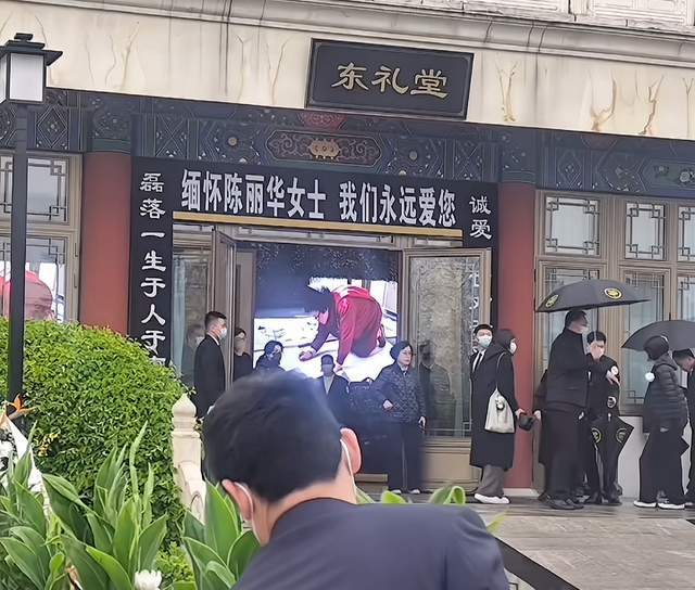 4月9号,陈丽华的追悼会在北京八宝山殡仪馆东礼堂举行。由于其生前地位显著,所以追悼会当天来了诸多圈内友人,礼堂外更是鲜花矗立,肃穆中带着浓浓的不舍,也许老天都为此感到悲伤,小雨也一直下不停。