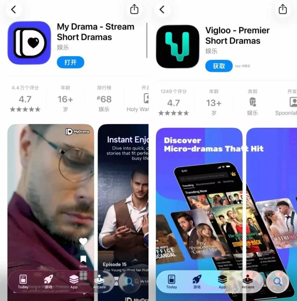 据DataEye数据,2026年1月收入榜TOP20中,海外本土短剧APP占据3席:乌克兰的My Drama内购收入约541万美元,环比增长30%;韩国的Vigloo内购收入约195万美元,环比激增80%。2025年Q3,TOP30短剧应用中,中文应用下载量占比已从95%骤降至67%。