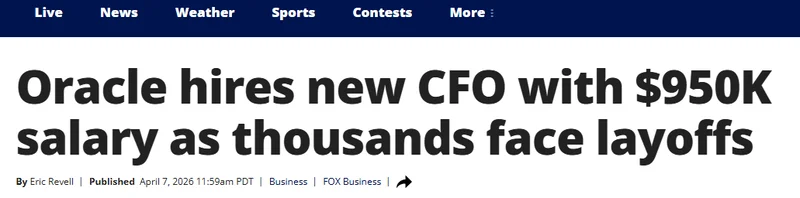 甲骨文操作引热议:边裁员,边招CFOKTVU