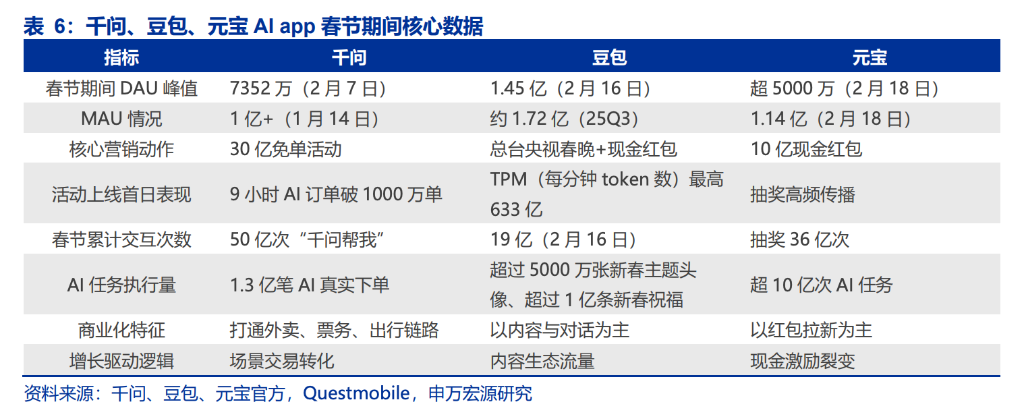 C端商业化迎来历史性突破。2026年2月6日,千问推出“30亿大免单”活动,上线9小时内AI生成订单突破1000万单,截至2月23日累计完成近2亿笔AI下单,用户共发出50亿次“千问帮我”指令。2月7日,千问DAU达到7352万,连续8天位居苹果App Store免费榜榜首。值得一提的是,超过400万名60岁以上用户首次通过千问体验AI点外卖,充分验证了AI应用的跨圈层渗透能力。