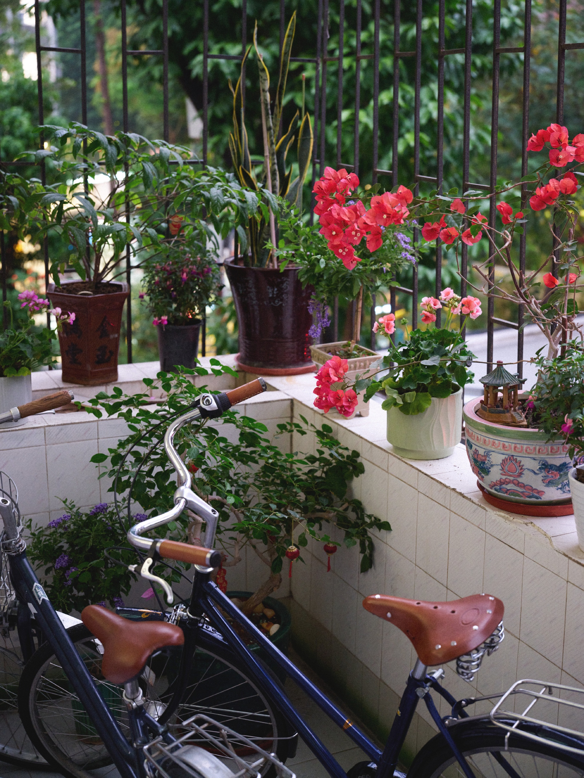 春天到了,阳台上的花也盛放着,浓艳的红,娇媚的粉,还有那放置很久的自行车,是该骑上它们去兜一兜风,看一看春天的样子了。