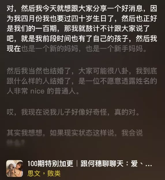 之前她在播客节目中就透露已低调再婚,并且也分享了自己是母亲身份。
