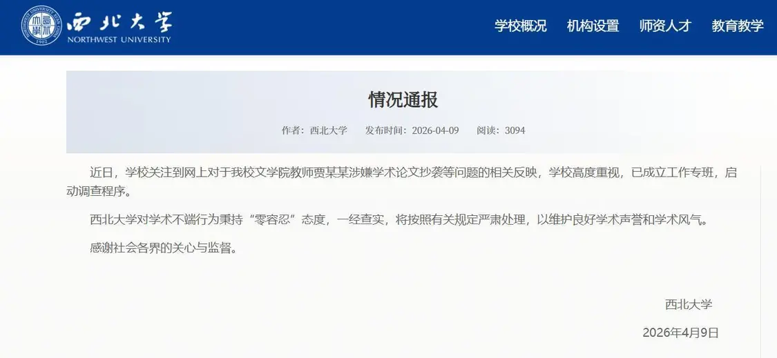 贾浅浅涉抄袭论文,西北大学启动调查极目新闻