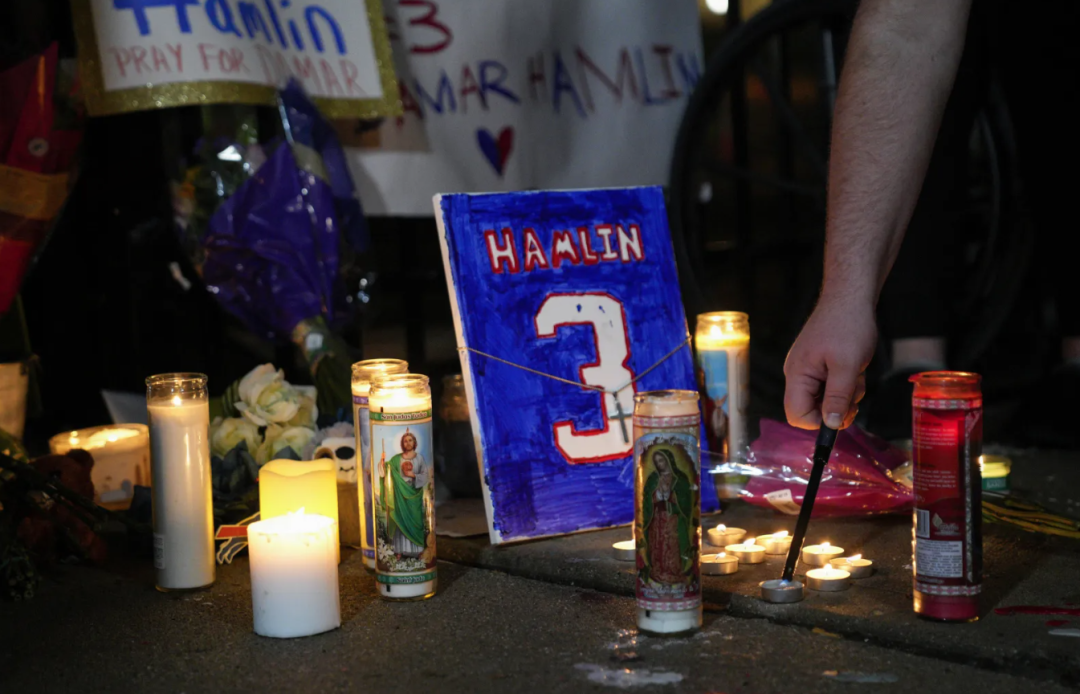 晚上 9 点 23 分,哈姆林被迅速送往辛辛那提大学医学中心,一度被报道情况危急,并且接受了插管。凌晨 1 点 48 分,比尔队给出了让所有人安心的官方报告:哈姆林最初心脏骤停,但在球场上恢复了心跳。