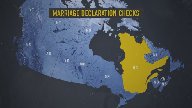 CTV W5调查显示,如果婚礼主持人在魁省明知不符合法律规定而办理婚姻或民事结合,根据魁省民法,他可承担民事责任,但其他省份没有类似规定。