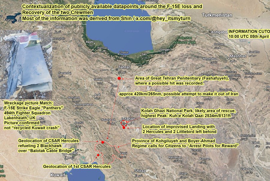 伊朗境内被击落的F-15E确切地点说法不一,部分报导指向伊斯法罕省中部,另有说法指向西南方的科吉卢耶-博阿赫迈德省或胡齐斯坦省。这场行动的真实目的,从来不是为了抢救距离临时跑道100公里外的飞行员,而是35公里左右的伊斯法罕核设施浓缩铀的秘密突击行动,在失败收场后,才以「全力搜救飞行员」作为掩护对外交代。