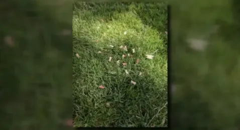 有狗主人在公园草坪和树后发现了大量散落的 Milk Bones 狗零食。令人心惊的是,这些零食散发着极其刺鼻的杀虫剂喷雾味!据现场捡拾的家长描述,那种化学气味重到让人头晕恶心,可见浓度之高。