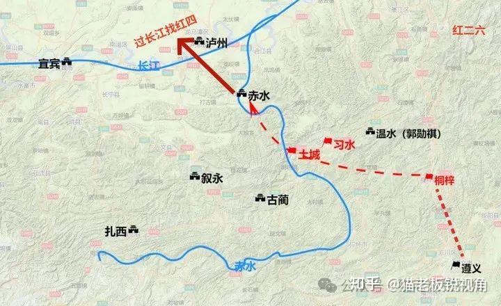 西渡赤水河的目标也很明确,那就是过了赤水河,拿下叙永县城,从这儿往北走,继续北渡长江。具体路线如下图所示。