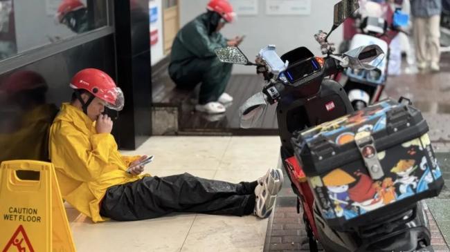 一位外卖小哥在暴雨天坚持把餐送到客户手里,浑身湿透,客户打开门,看到小哥的样子,连声道谢,还非要塞给他一瓶水和一包纸巾。