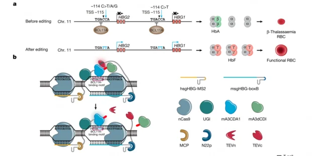 但对β-地贫患儿而言,他们的成人血红蛋白合成严重不足或完全缺失。“这种情况下,我们希望能通过碱基编辑,把胎儿血红蛋白重新利用起来。”陈佳教授告诉“医学界”。
