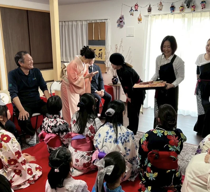 活动地点在篠栗町的一个儿童活动中心。她在Ins上写了一段话,说孩子们穿上浴衣后“就像一朵朵小花一样”,茶道体验“又开心、又美丽、又美味,孩子们的脸也闪闪发光”。