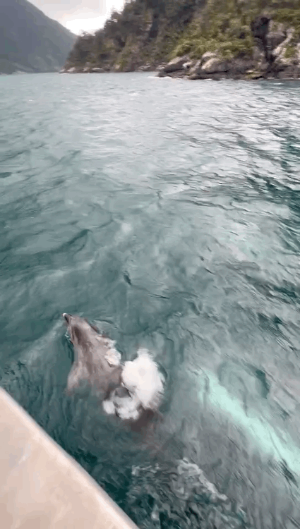 幸运地在米尔德福峡湾看到了海豚,随着我们的小舟欢快地游动着~~~