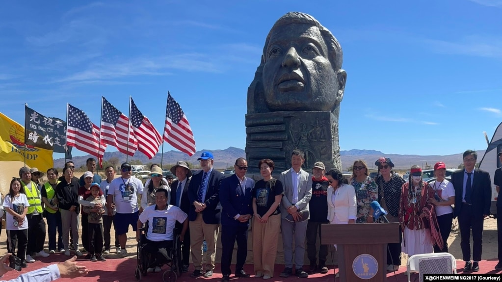 2026年4月4日,中国民主活动人士聚集在加州的自由雕塑公园,为人权律师高智晟的雕像揭幕。