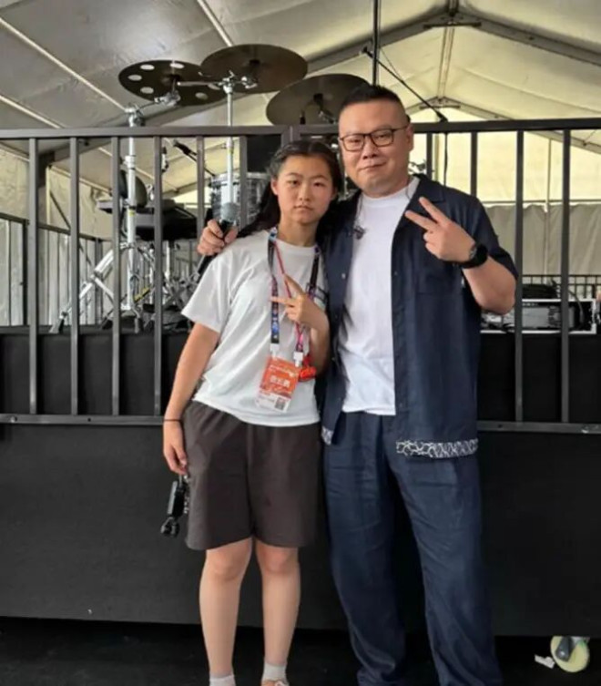 这次岳云鹏是带两个女儿一起出行,14岁的大女儿站在他身边,身高格外抢眼。