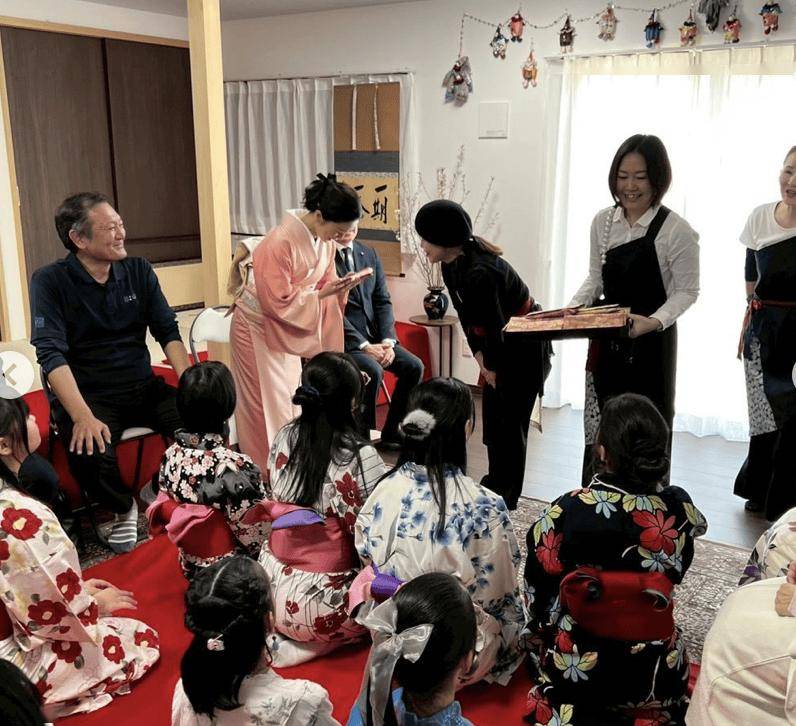 这次她回到老家福冈,以“儿童健康成长大使”的身份参加活动,还陪孩子们一起体验茶道。