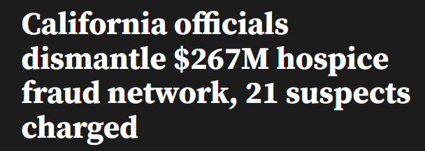 “在这个欺诈计划实施期间,没有提供过任何一项合法的临终关怀服务,却通过这种肆无忌惮、精心策划的手段,钻了Medi-Cal的空子,骗取了数百万美元。这不是失误或漏洞;这是蓄意的欺诈。”