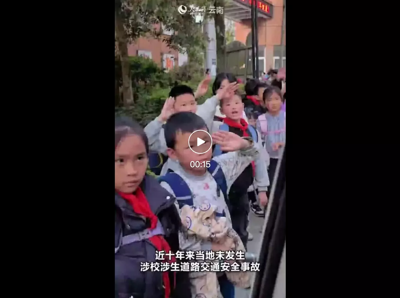 这是人民网记者2024年4月发的,标题是《暖心!小学生向车辆敬礼示意司机减速慢行》。这跟20年前重庆奉节不一样,目的是为了保障学生安全。但正如前面说的,这难道不是驾驶者的义务吗?看见前面有小孩子,早早减速,保证安全才缓慢通过吗?当然,行人也有注意的义务,但我不明白为什么要用敬礼这种形式。