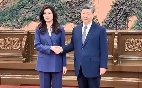 郑习见面一开始,两人握手14秒,习近平对郑说“您好,郑丽文主席”。
