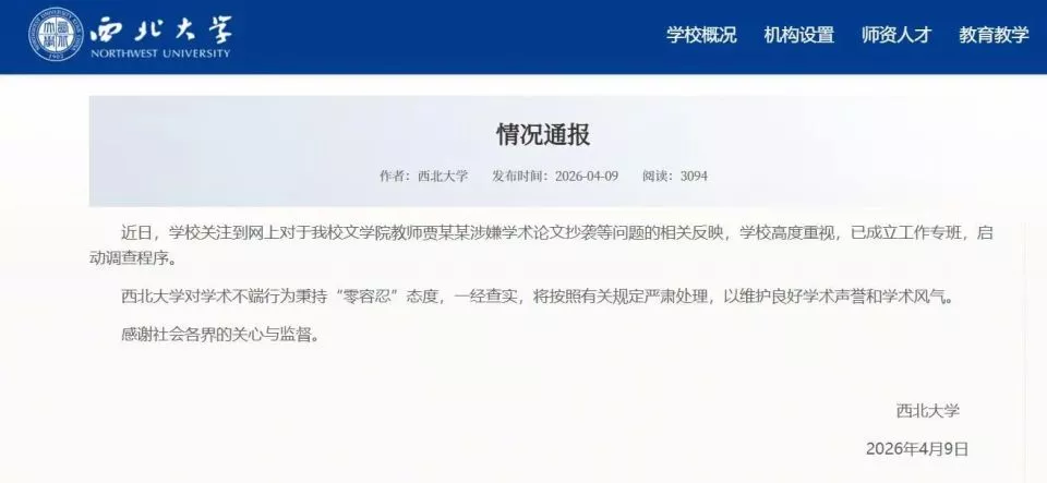 大河报《看见》记者查询发现,西北大学于2025年出台《学术不端行为调查处理办法(试行)》,该办法涉及范围为西北大学教学科研人员、管理人员和学生。
