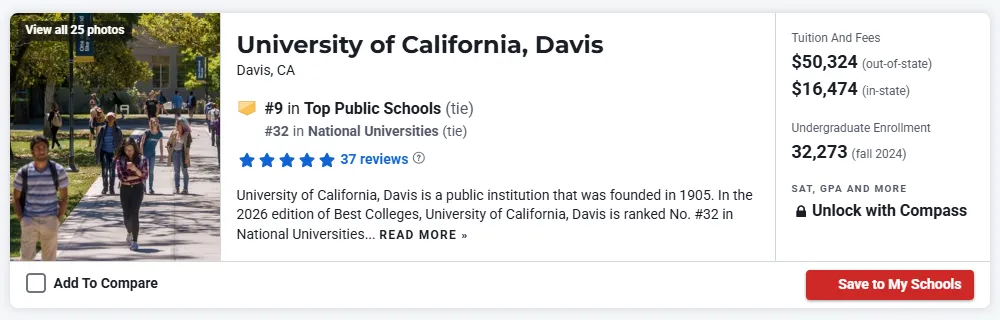 除 Berkeley 领跑全美外,加州大学系统在榜单前十名中占据了惊人的五个席位。值得关注的是,UC Davis此次同样表现抢眼,成功杀入全美前十。这意味着在湾区方圆百里之内,聚集了全球最稠密的优质公立教育资源,这种地缘红利在全美范围内是独一无二的。